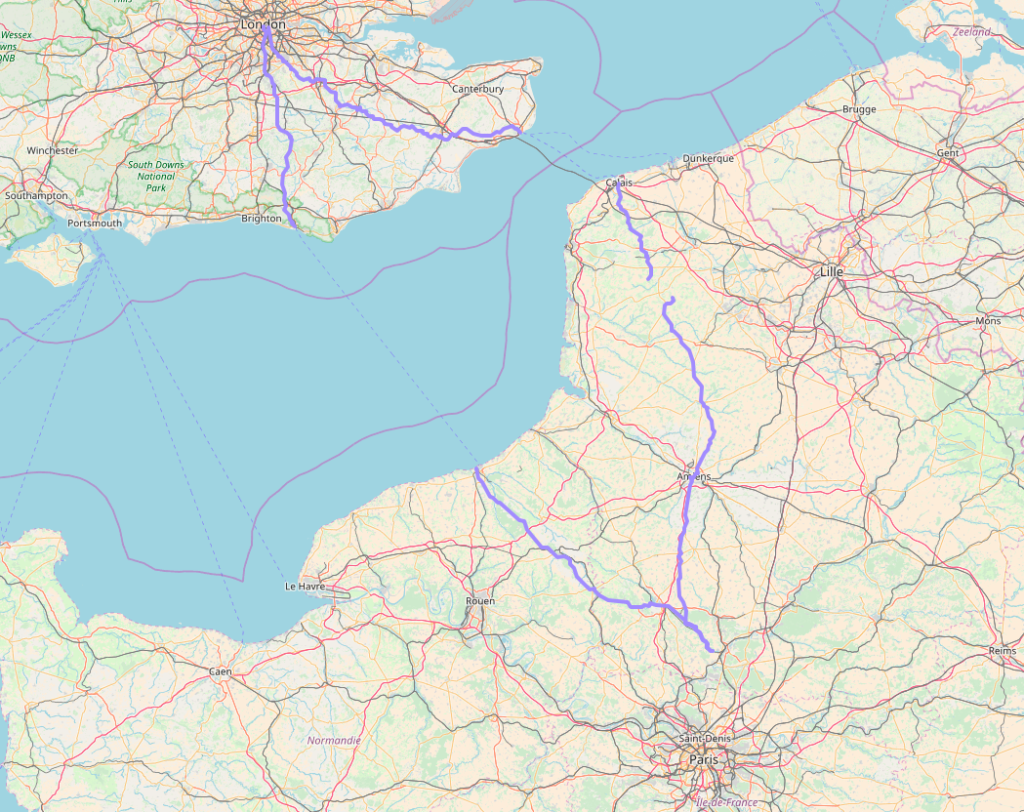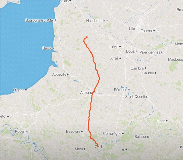 La boucle est bouclée. En arrivant aux alentours de Beauvais je connaissais le chemin par cœur. En plus de le faire régulièrement lors des entraînement je l’avais pris pour Dieppe. Je repasse alors à certains endroits en me disant que la dernière fois que j’étais passé il faisait nuit. J’étais à la frontale. Seul. J’allais monter dans le bateau quelques heures après. Et j’allais voir Londres le soir même.