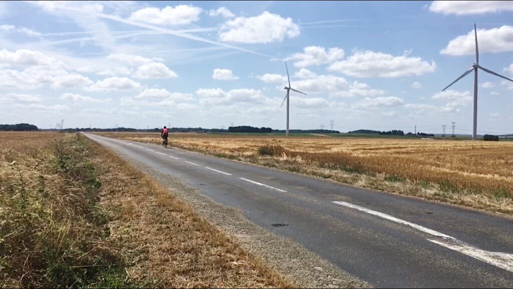 Scotché dans les vallons au sud de Calais. Plein de vallons. Sans ombre. Une chaleur terrible avec la route. Une fournaise. La chaleur d’hier était beaucoup moins élevée à côté finalement.